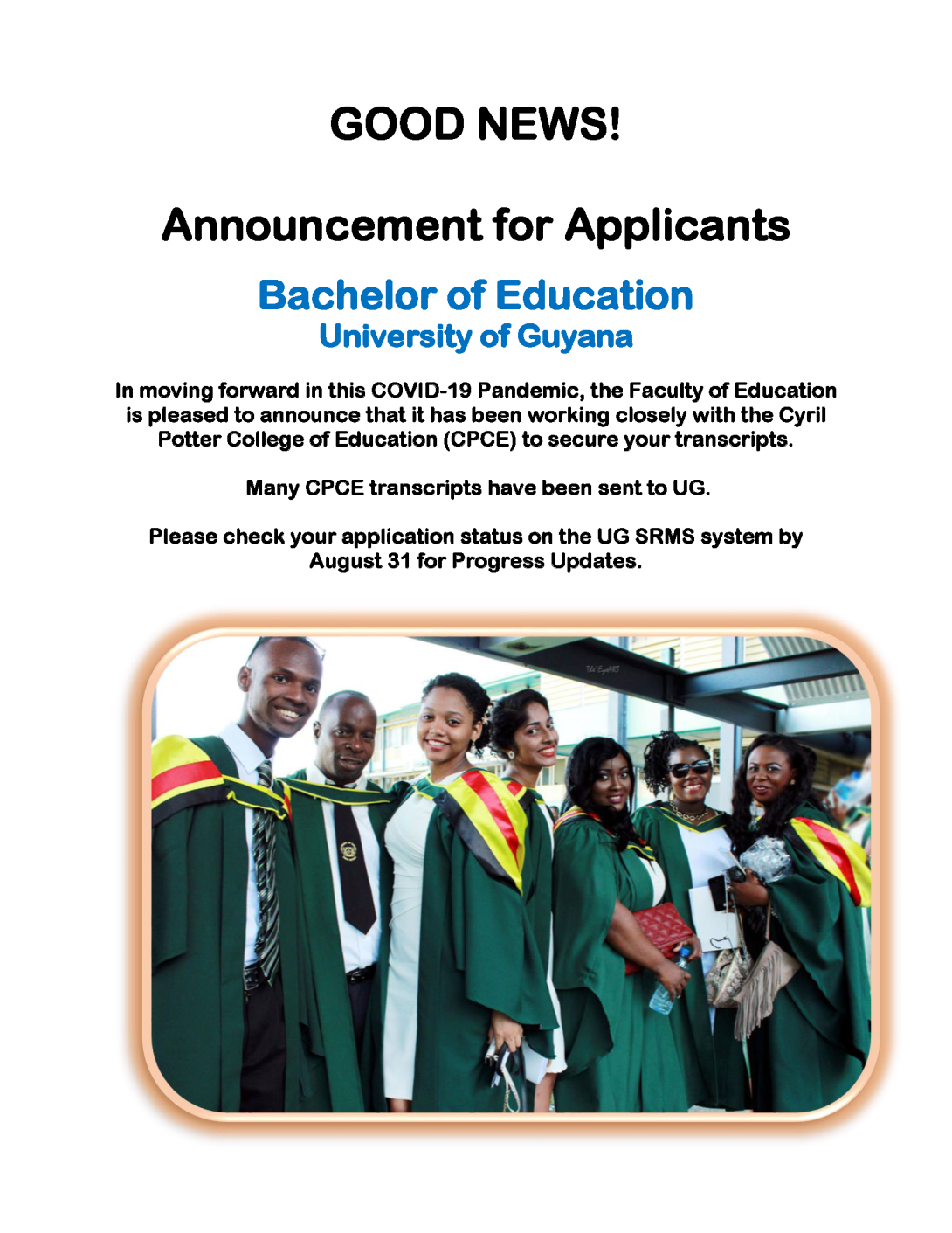 In moving forward in this COVID-19 Pandemic, the Faculty of Education is pleased to announce that it has been working closely with the Cyril Potter College of Education (CPCE) to secure your transcripts.